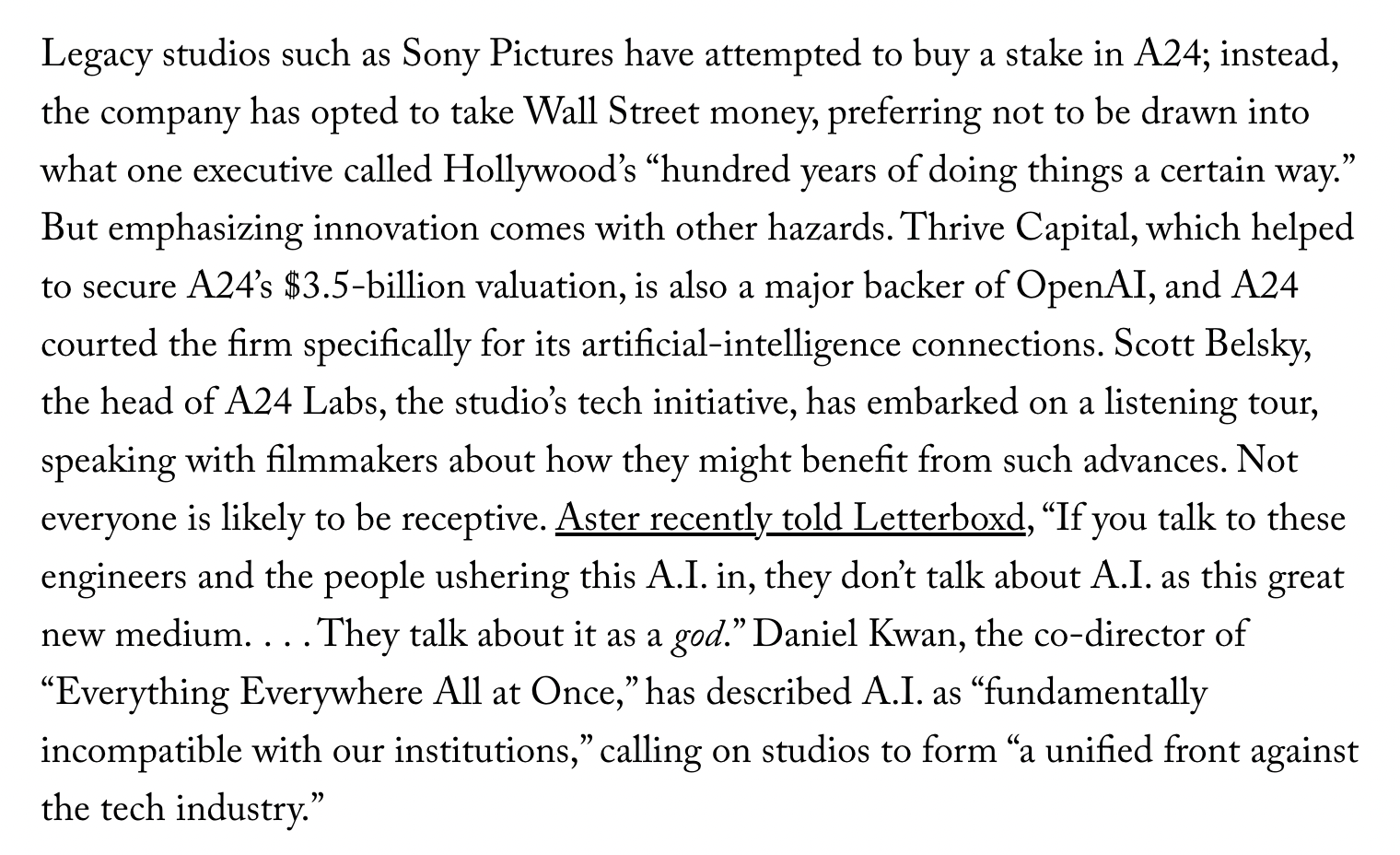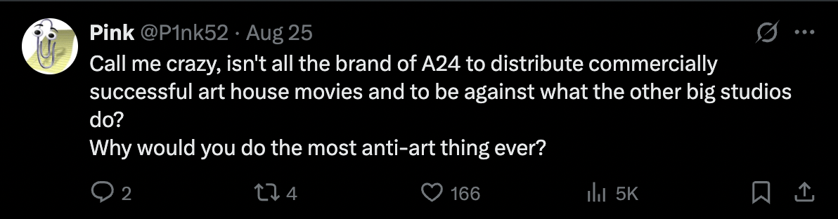 I don’t read this as A24 selling out, abandoning its DNA, and becoming “AI-first”.